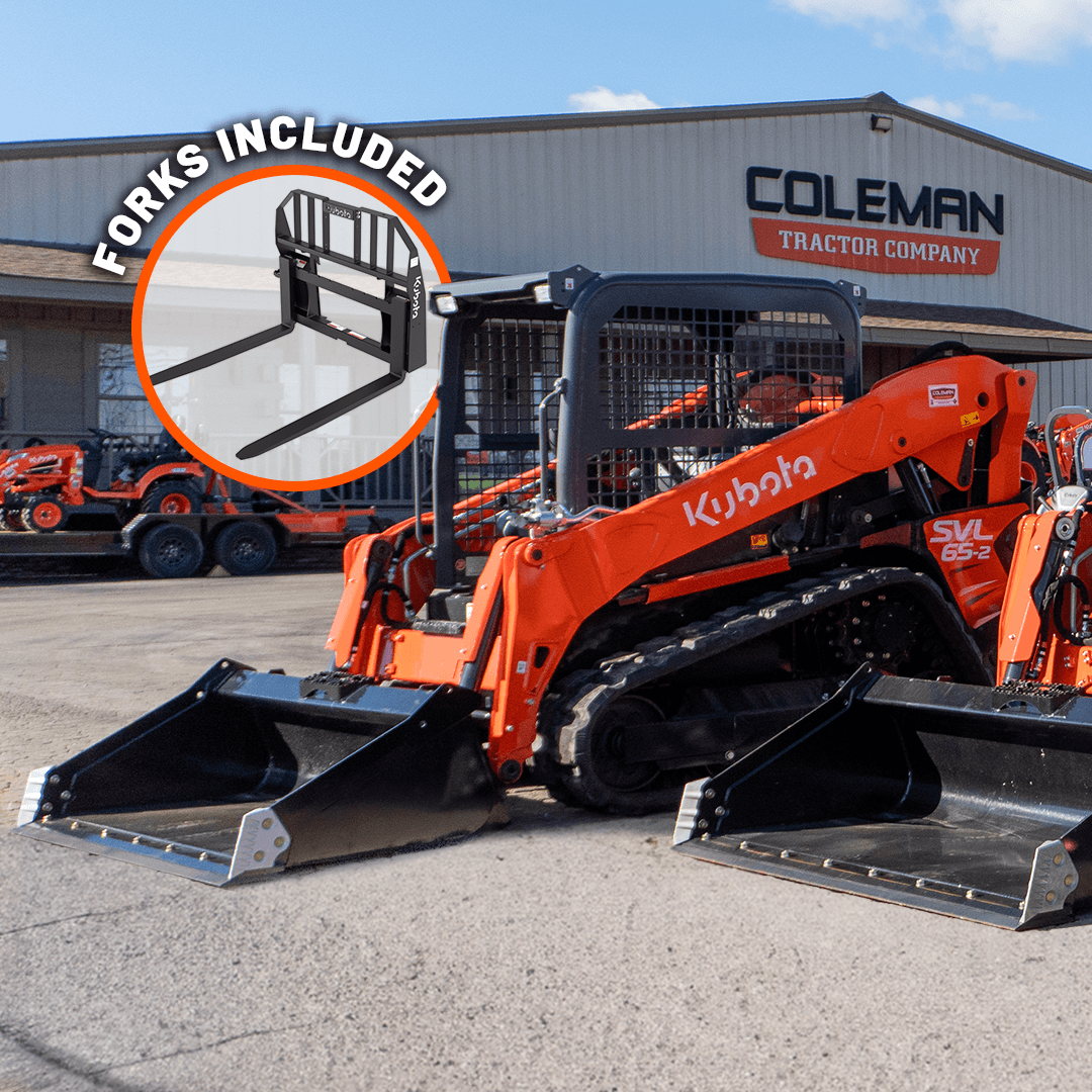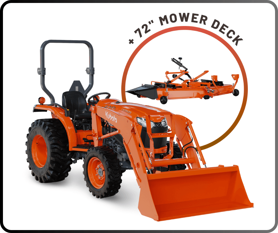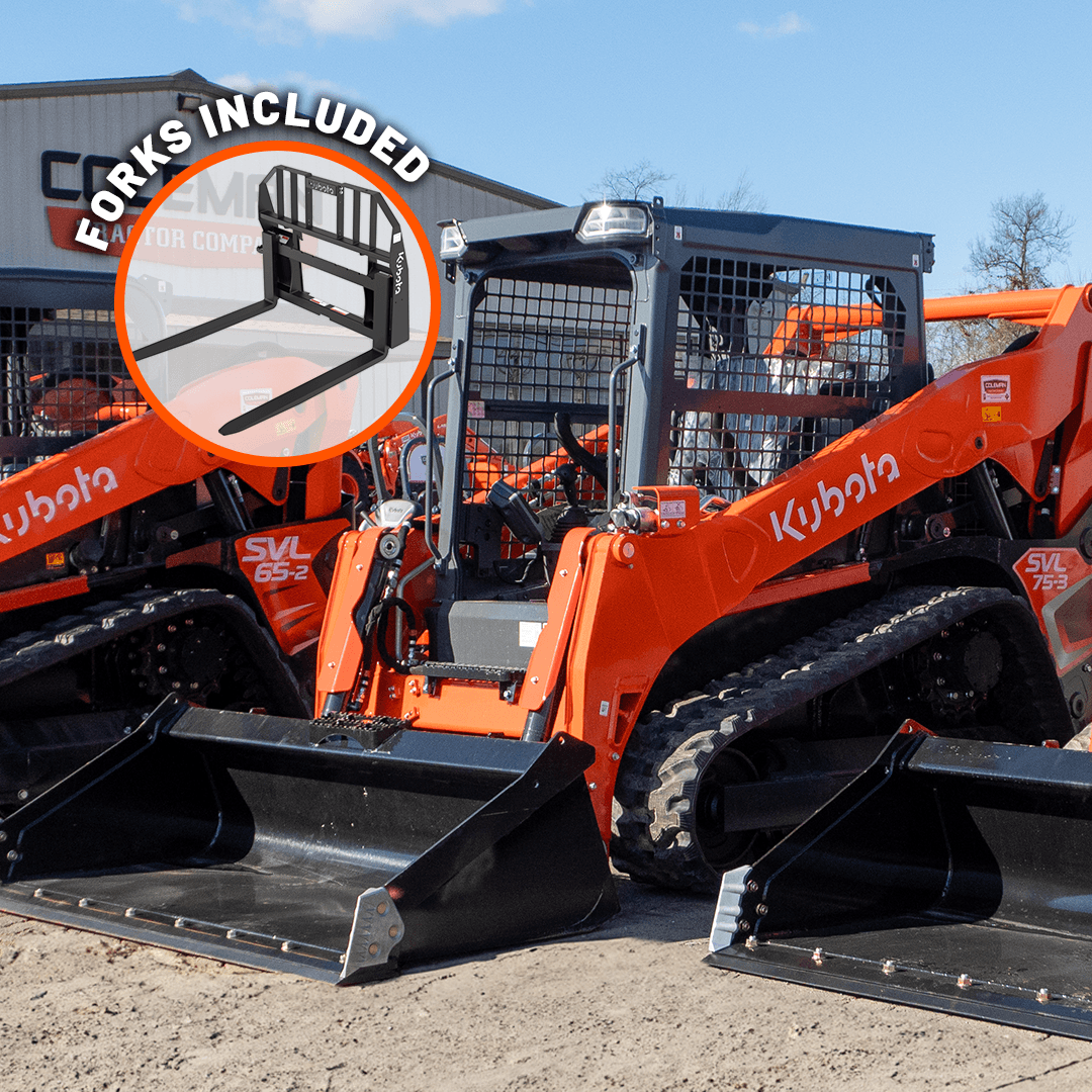 Kubota typically offers various combinations of 0% financing and $0 down payment. Certain longer-term financing options may require a down payment. Our Sales Team can help you select the program that best fits your needs.
