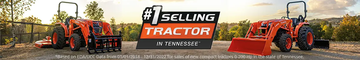 "#1 Selling Tractor in Tennessee" Disclaimer: *Based on EDA/UCC Data from 01/01/2018 - 12/31/2022 for sales of new compact tractors 0-200 Hp in the state of Tennessee.