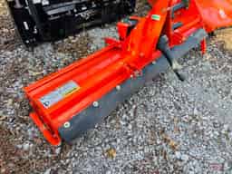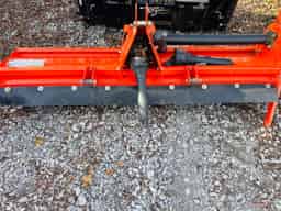 The Land Pride RTR1282 is an 82-inch wide, reverse-rotation rotary tiller for 30-60 HP tractors, featuring a Cat 1 hitch, quick-hitch compatibility, and “C”-shaped tines for deep tilling, with specs like an 87 1/8″ overall width, adjustable skid shoes for depth control, and a 3-year gearbox warranty for seedbed prep in landscaping or gardening.