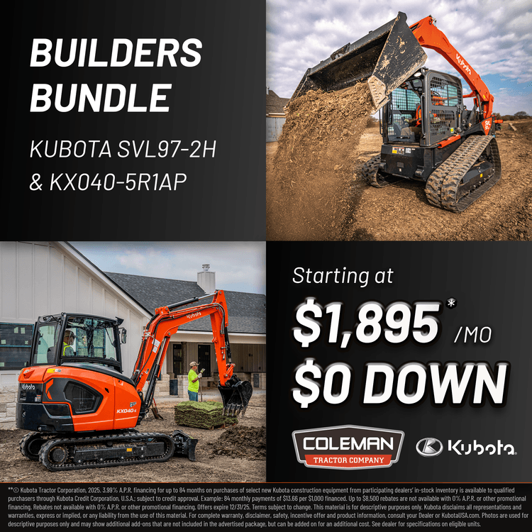 Get your Kubota winter-ready starting at $299 +tax. Free pickup & delivery within 50 miles!
